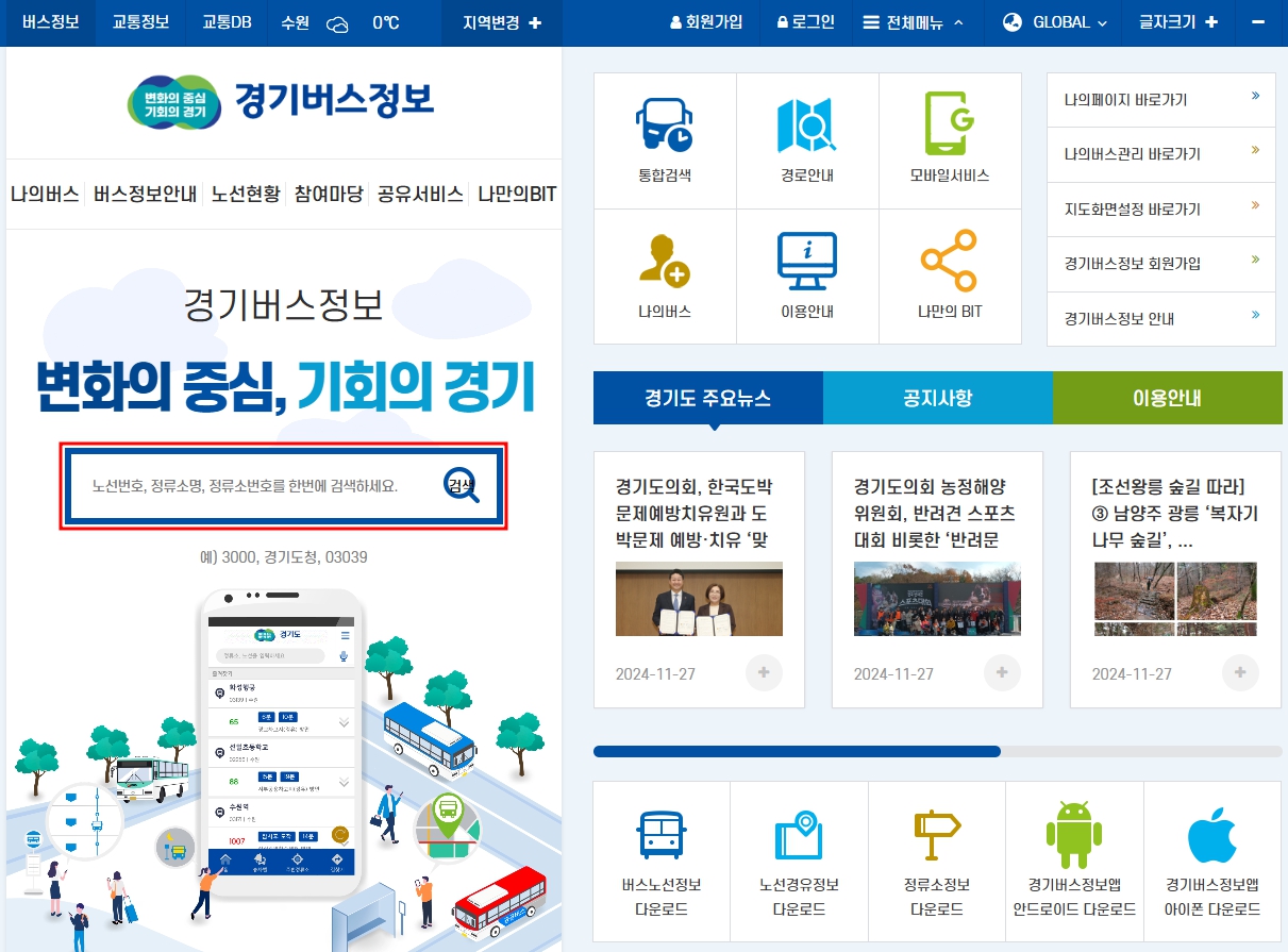 경기버스노선검색 기본 사용법