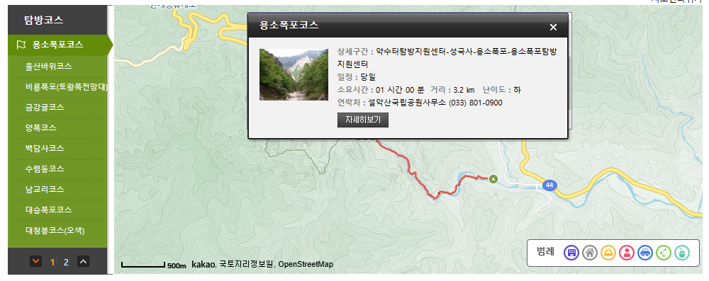 Q: 설악산 국립공원 홈페이지에서 제공하는 탐방 코스 정보는 얼마나 자세한가요?