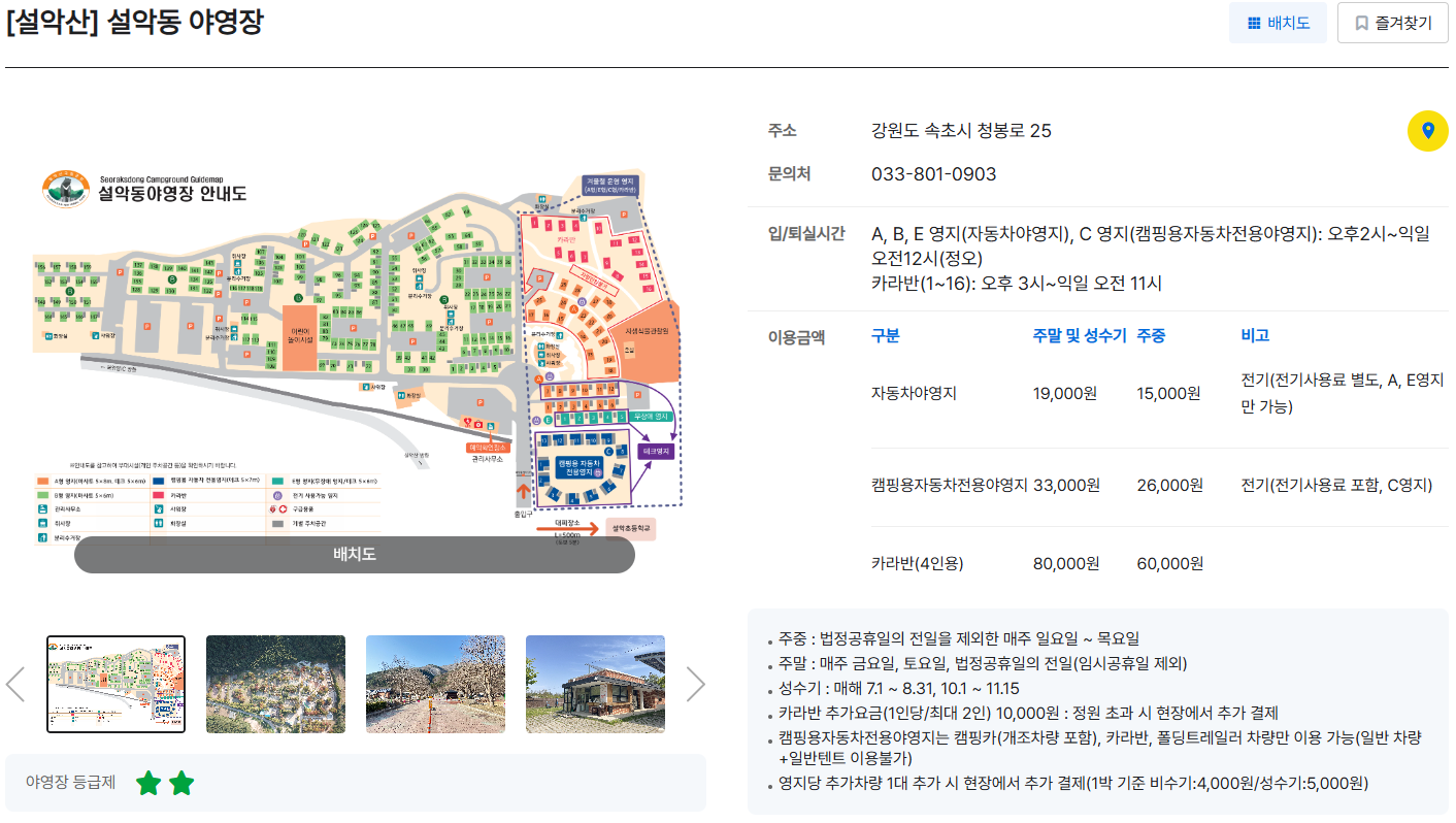 야영장 예약은 특히 인기가 높습니다. 설악산 국립공원 내에는 여러 개의 야영장이 있으며, 각 야영장마다 특징과 주변 환경이 다릅니다. 홈페이지에서는 각 야영장의 위치, 수용 인원, 시설 정보, 주변 명소 등을 상세히 제공하고 있어, 자신의 필요에 맞는 야영장을 선택할 수 있습니다. 예약 시에는 원하는 날짜와 인원을 선택하고, 가능한 사이트를 확인한 후 예약할 수 있습니다.