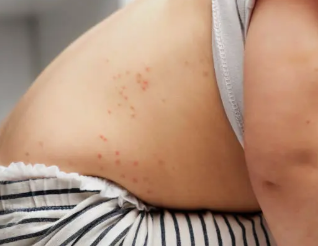 - 12~48시간 이내 전신에 선홍색 좁쌀 같은 발진(특히 목, 겨드랑이, 사타구니에서 시작)