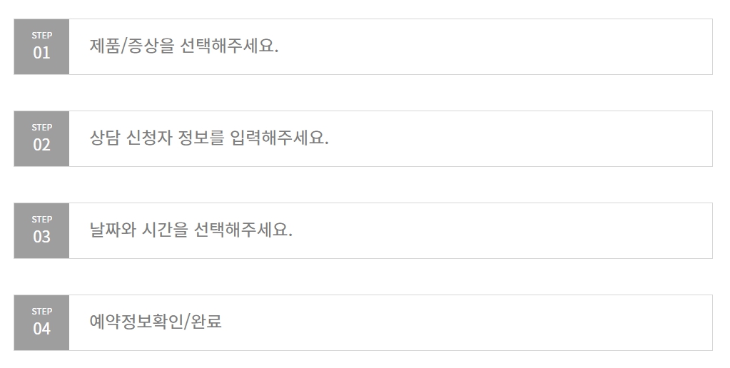 - 제품/증상, 상담자 신청 정보를 입력한 뒤 개인정보 수집 및 이용 동의와 개인정보 위탁처리에 동의합니다.