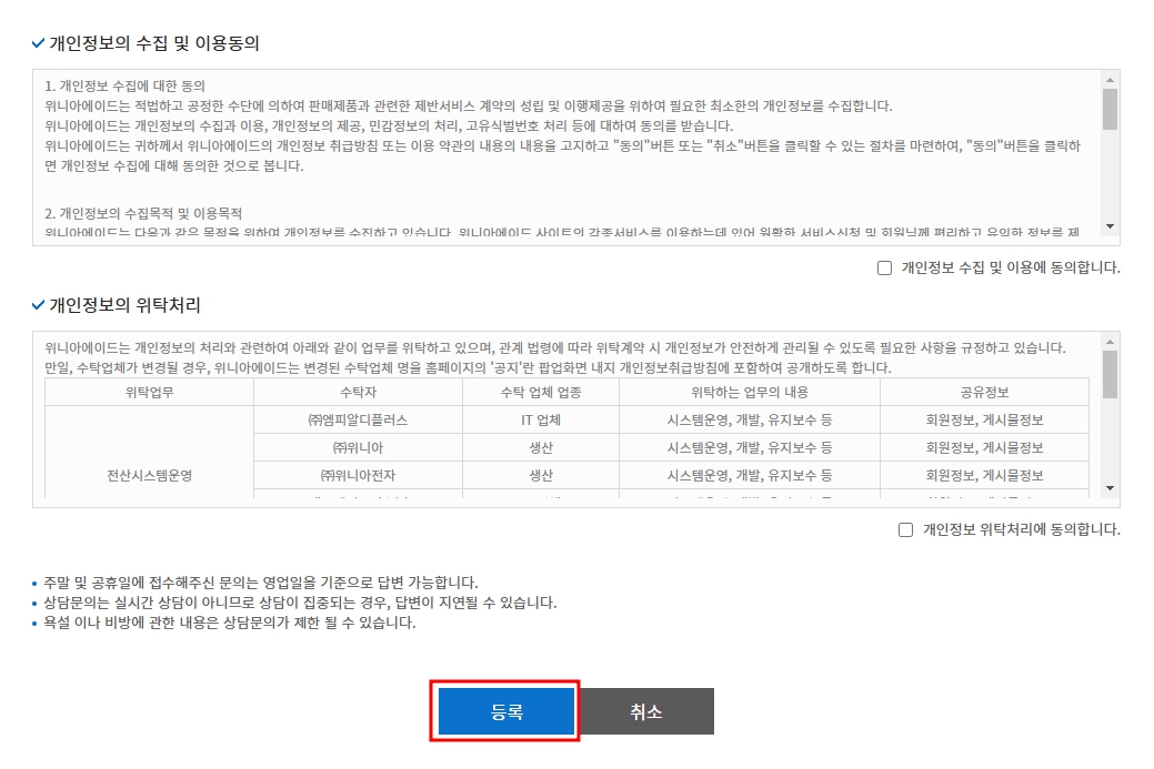 - 개인정보 수집 및 이용 동의와 개인정보 위탁처리에 동의합니다.