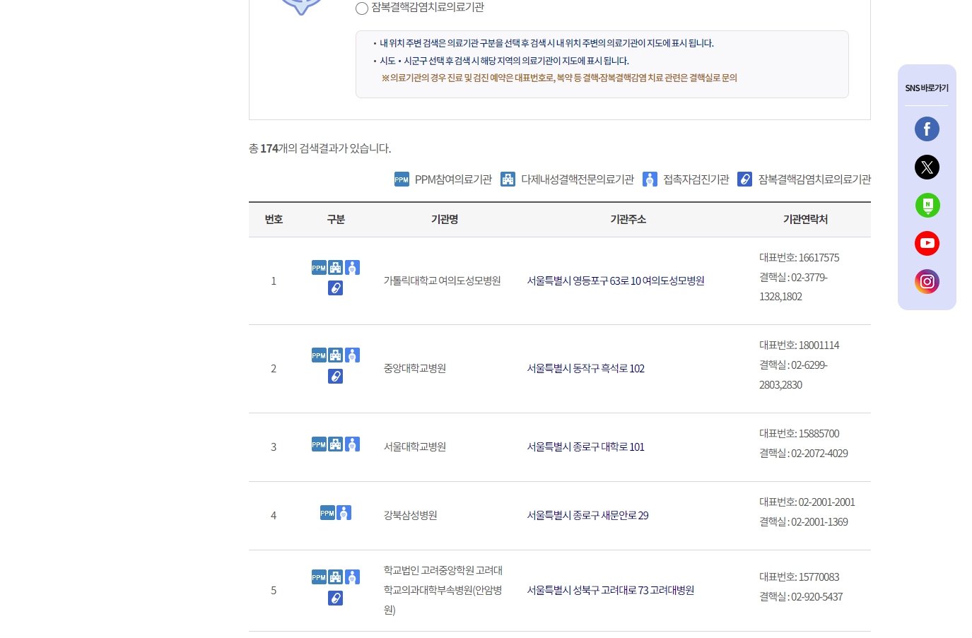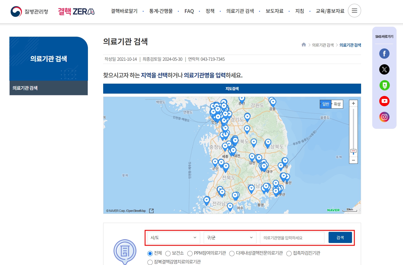 질병관리청의 결핵제로 사이트를 이용하면 손쉽게 잠복결핵 검사를 하는 주변 병원을 찾을 수 있습니다.